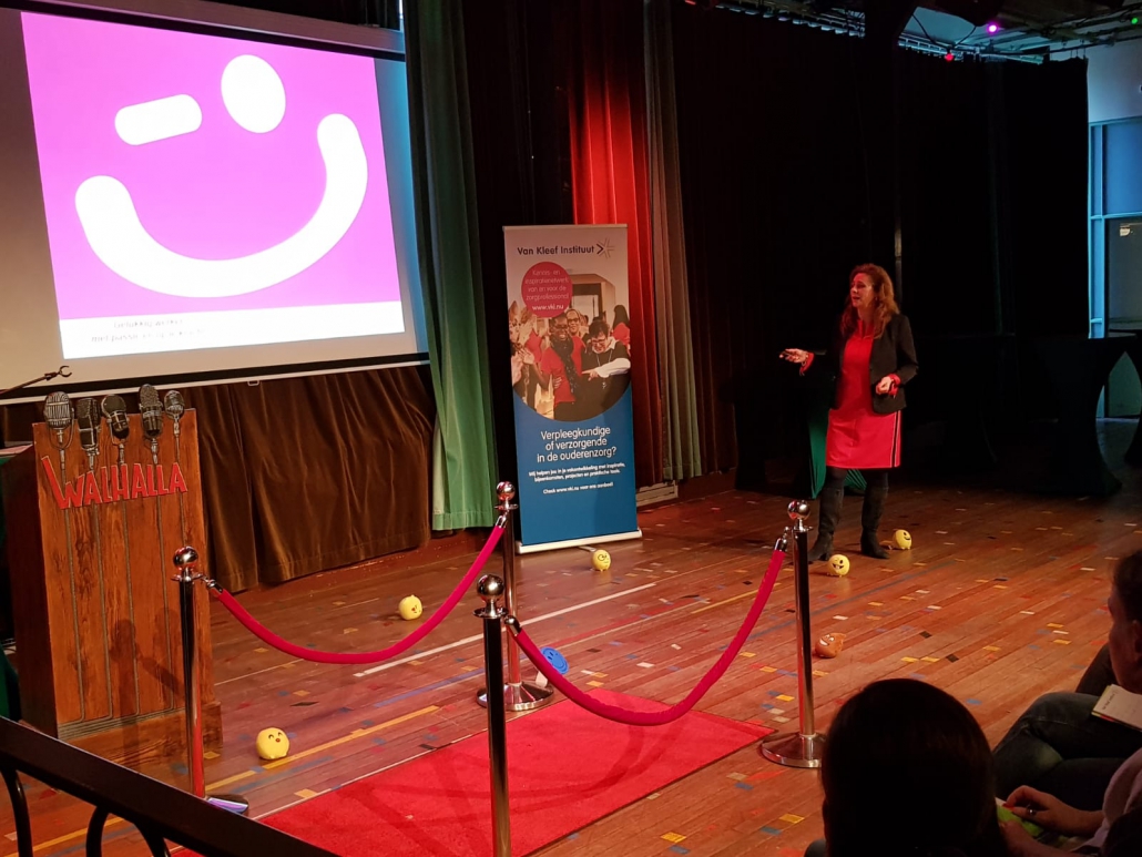 Tijdens het theatercollege krijg jij inspiratie om vanuit persoonlijk GELUK met WERKGELUK aan de slag te gaan! Je krijgt inzicht in wat werkgeluk is, waarom het zéér belangrijk is, hoe je omgaat met (langdurige) werkdruk, werkenergie verslinders versus werkgeluk boosters, inspiratie voor teamgeluk, designtechnieken werkgeluk en hoe je er in de dagelijkse praktijk werk van kunt maken in 10 inspirerende stappen. Aan het eind van het college zetten alle deelnemers de eerste stap op de weg naar een werkgelukkige toekomst